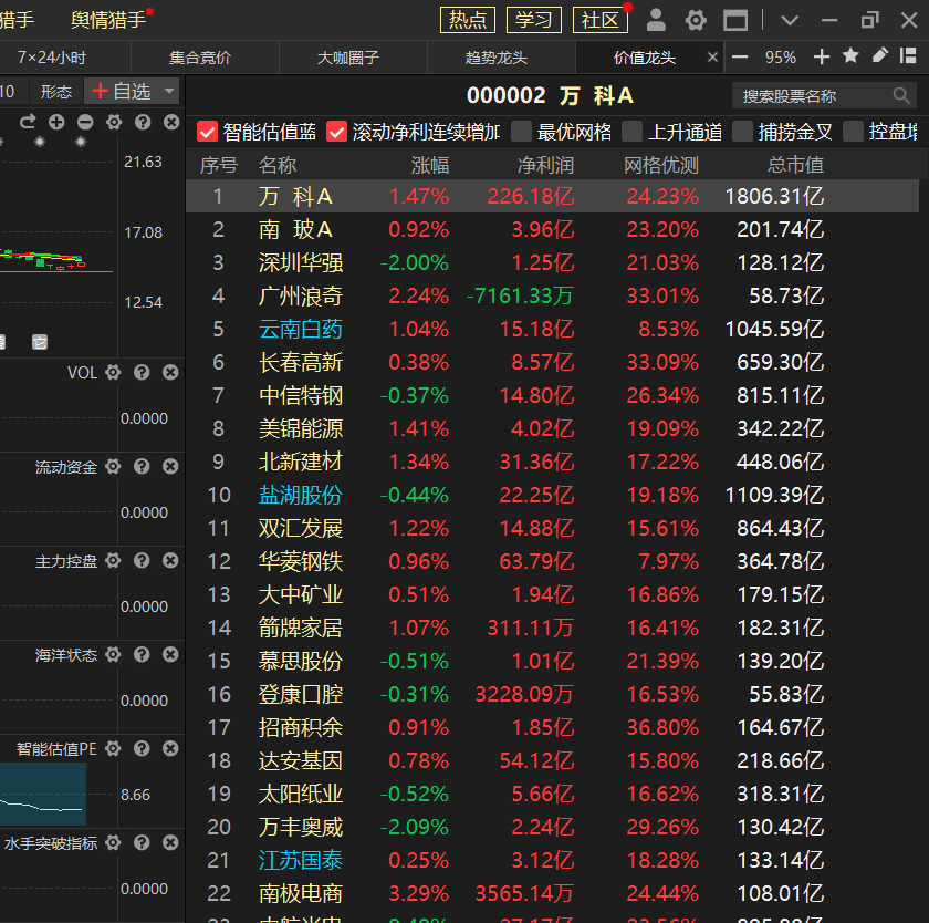 把行业龙头跟智尊版的低估+滚动净利润结合起来使用